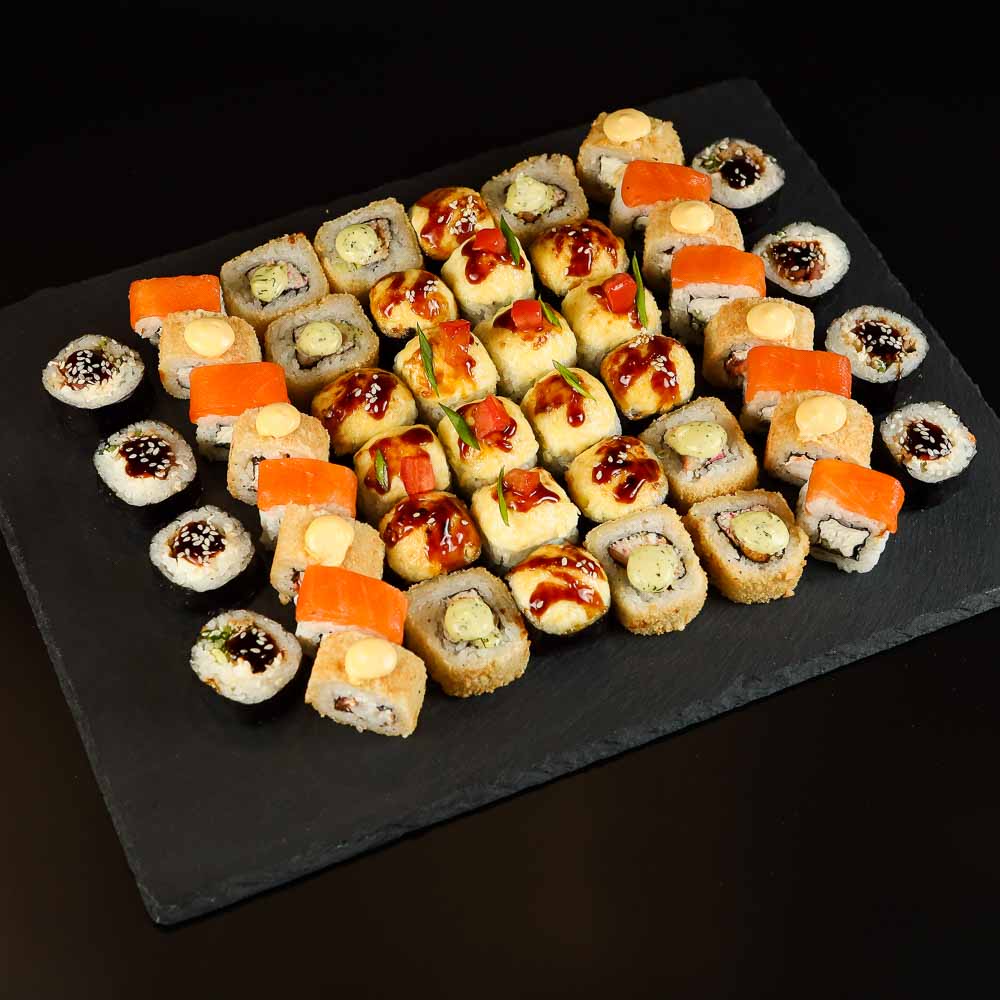 Сливочный Чикен, Филадельфия Лайт, Запеченный Хищник, Эби краб, Эби Чиз Темпура, Чикен Темпура.6 видов ролл, 48 штук.