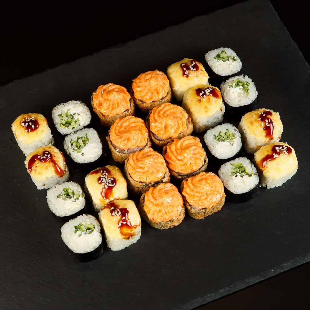 С огурцом, Запеченный Лосось Терияки, Лава Темпура. 3 вида ролл, 24 штук.