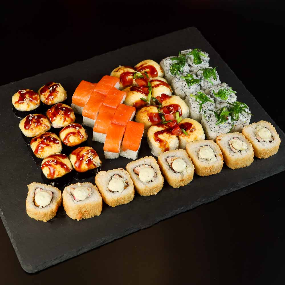 Лава с креветкой, Филадельфия Лайт, Запеченный Хищник, Эби Краб, Чикен Темпура. 5 видов ролл, 40 штуки.